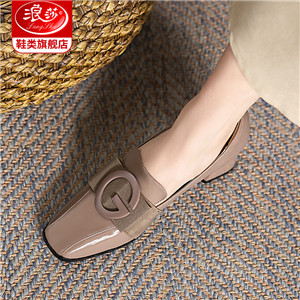 浪莎粗跟單鞋女2021早春女鞋一腳蹬小皮鞋中跟方頭深口真皮樂福鞋