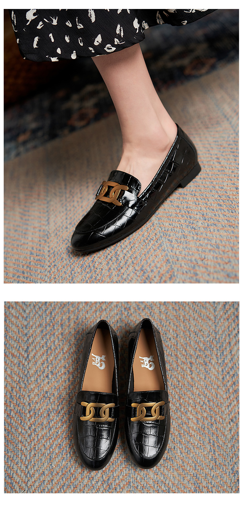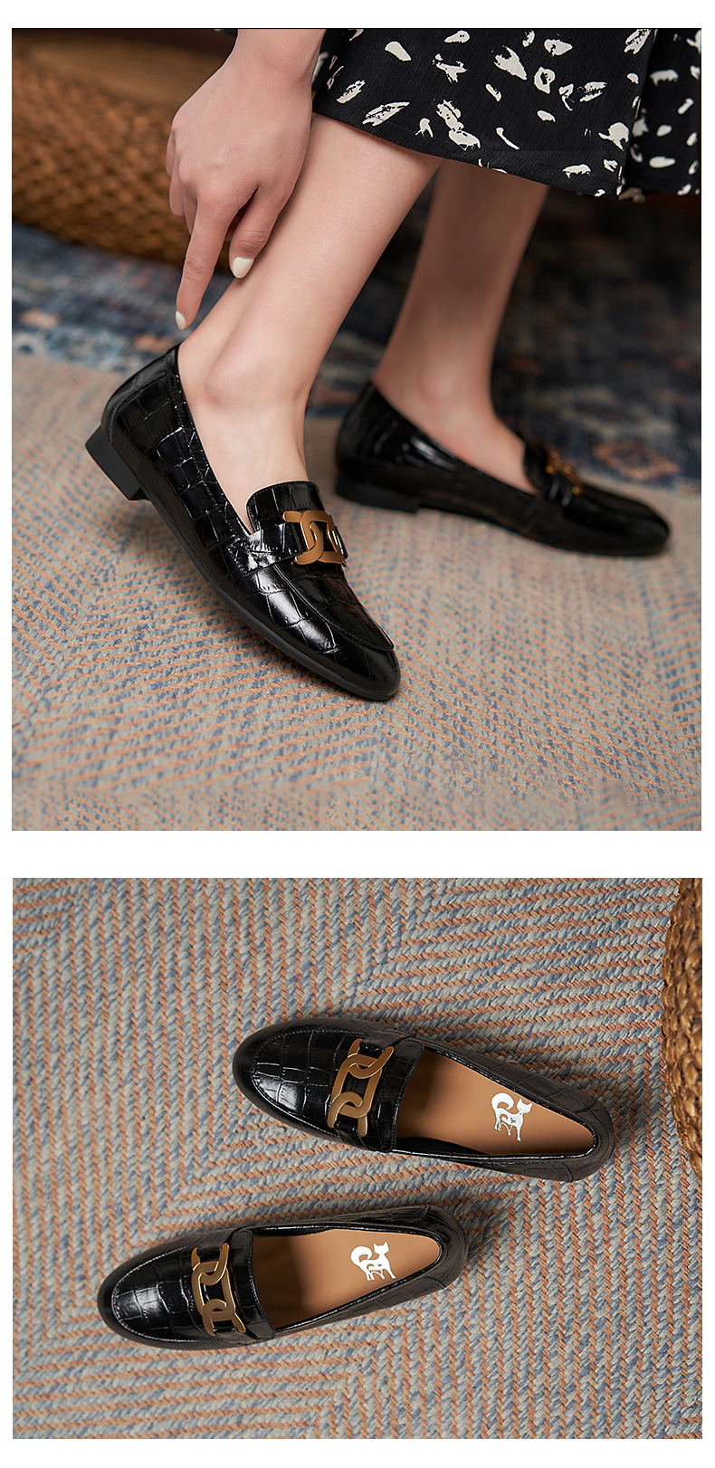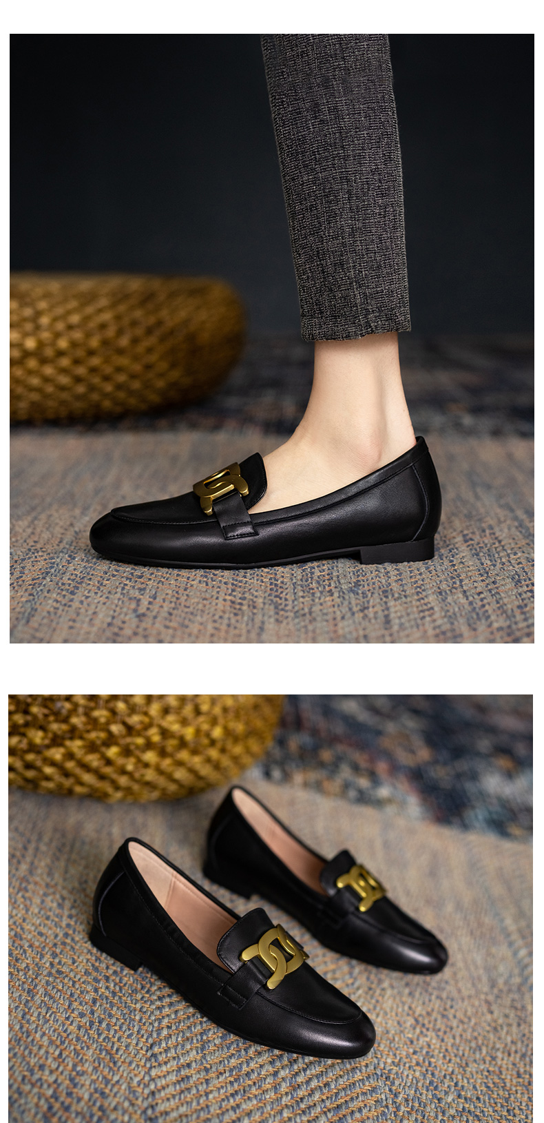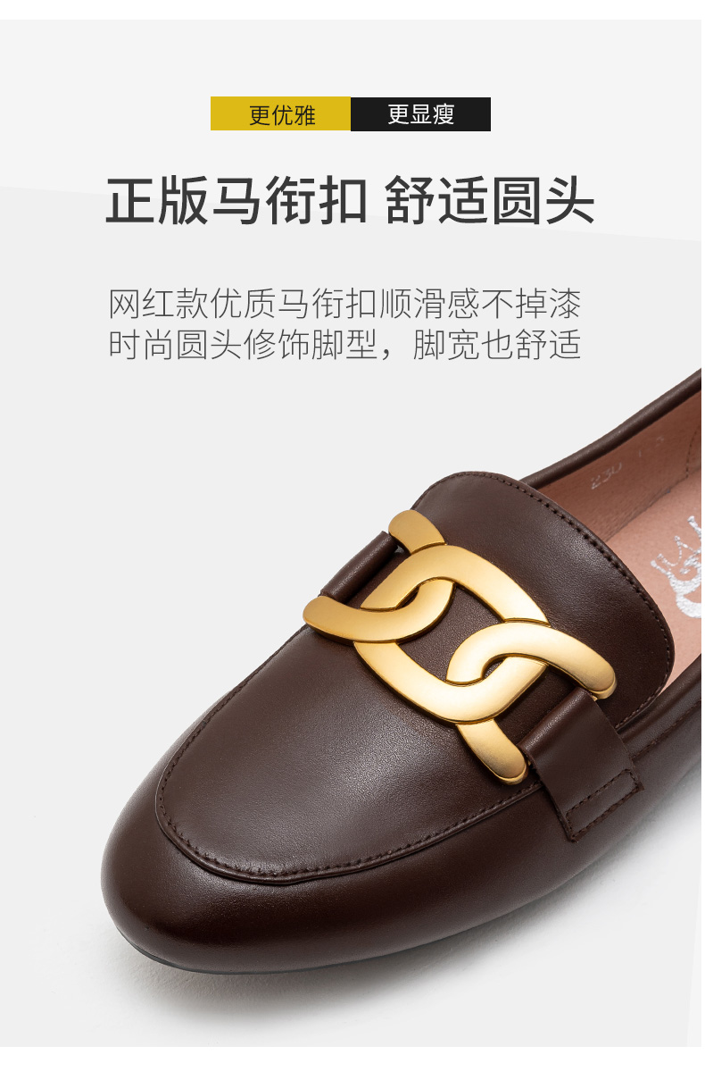 樂福鞋女真皮2021爆款鞋子春英倫風圓頭單鞋一腳蹬黑色平底小皮鞋
