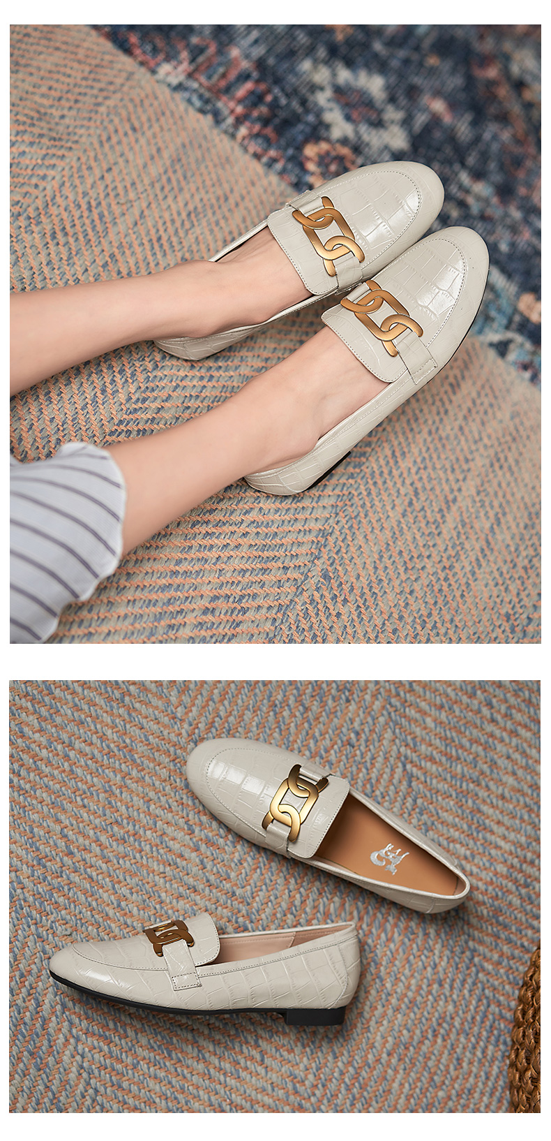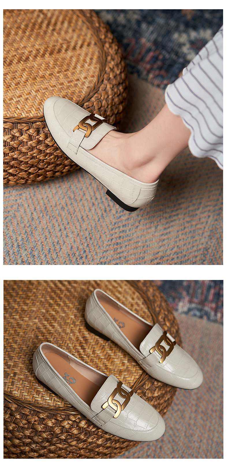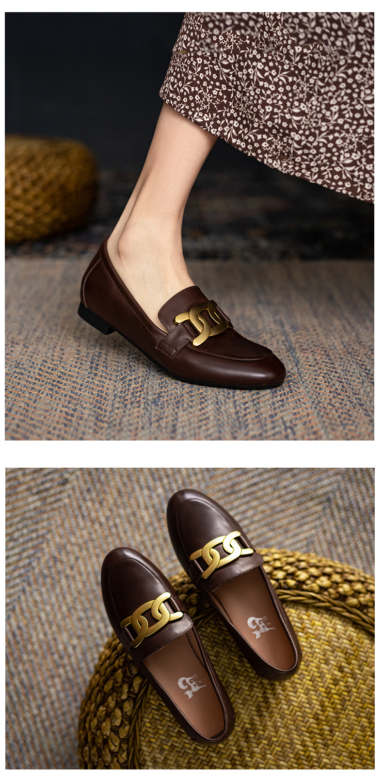 樂福鞋女真皮2021爆款鞋子春英倫風圓頭單鞋一腳蹬黑色平底小皮鞋