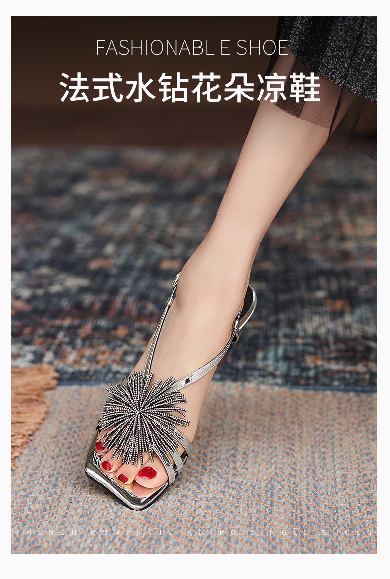 高跟涼鞋女2021年夏季新款仙女風氣質法式一字帶粗跟露趾時裝涼鞋