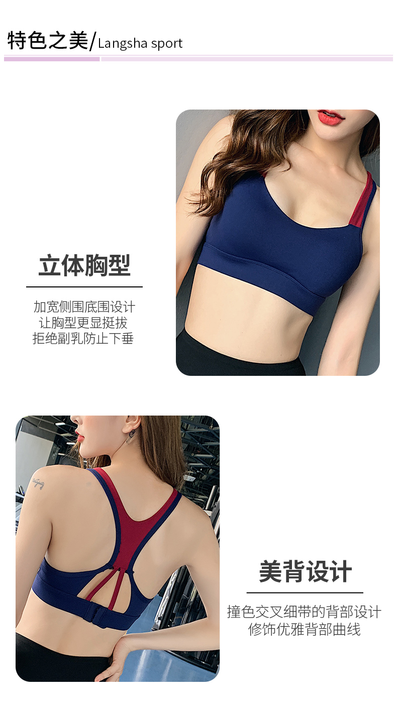 浪莎運動內衣女搭扣防震跑步聚攏定型美背瑜伽背心一體式健身文胸