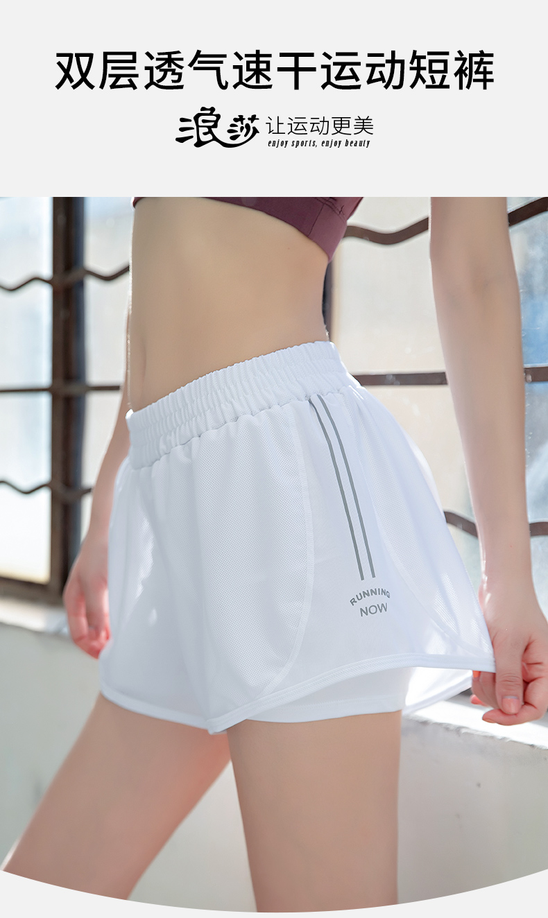 浪莎運(yùn)動(dòng)短褲女薄款寬松速干翹臀跑步訓(xùn)練網(wǎng)紗瑜伽防走光健身短褲