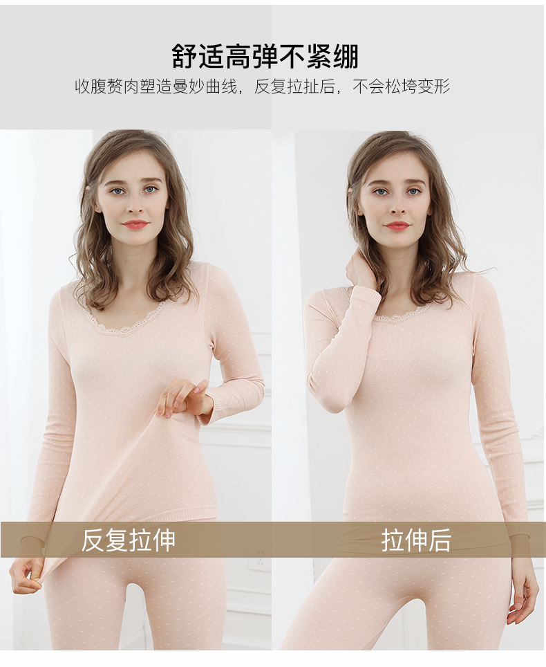 浪莎無縫提花美體保暖內(nèi)衣套裝女士緊修身薄款秋衣秋褲性感打底冬