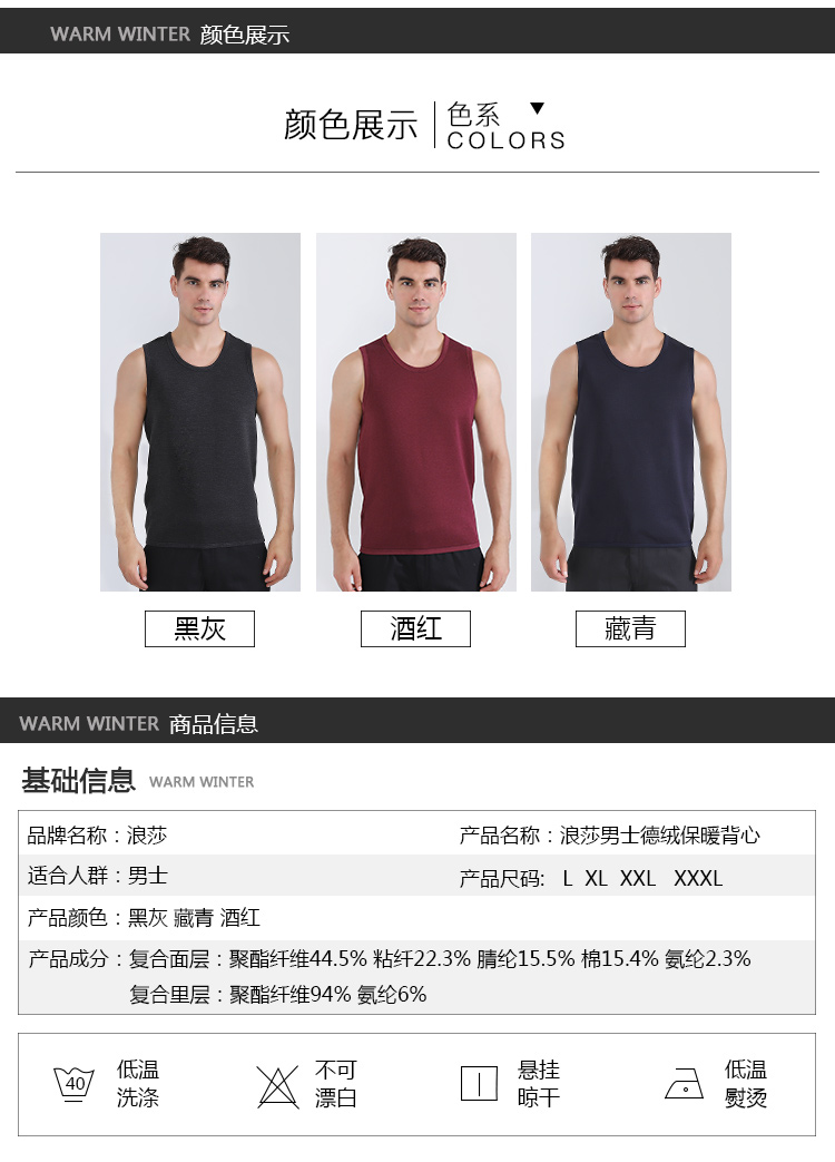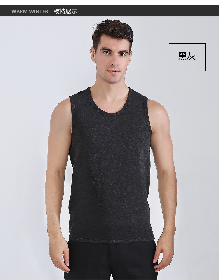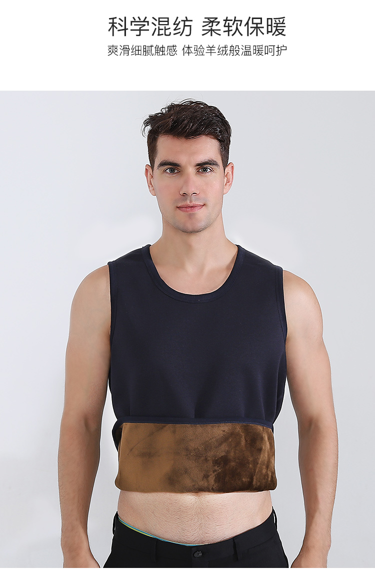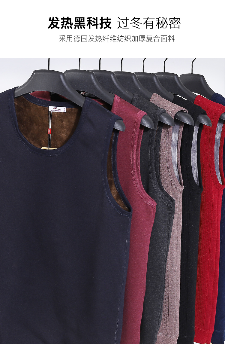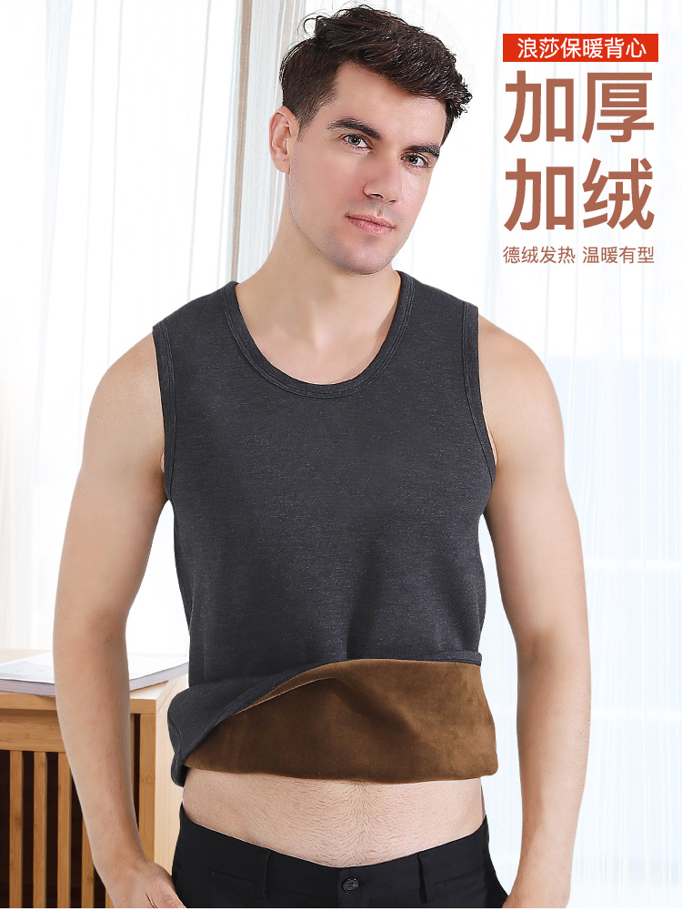 浪莎自發熱德絨保暖背心男士加厚加絨冬季上秋衣單件打底保暖內衣