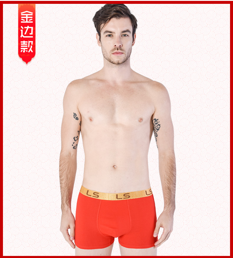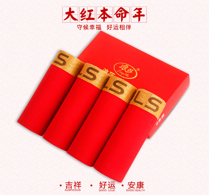 浪莎男士內褲男純棉本命年牛四角褲紅色平角褲結婚禮物男式短褲頭